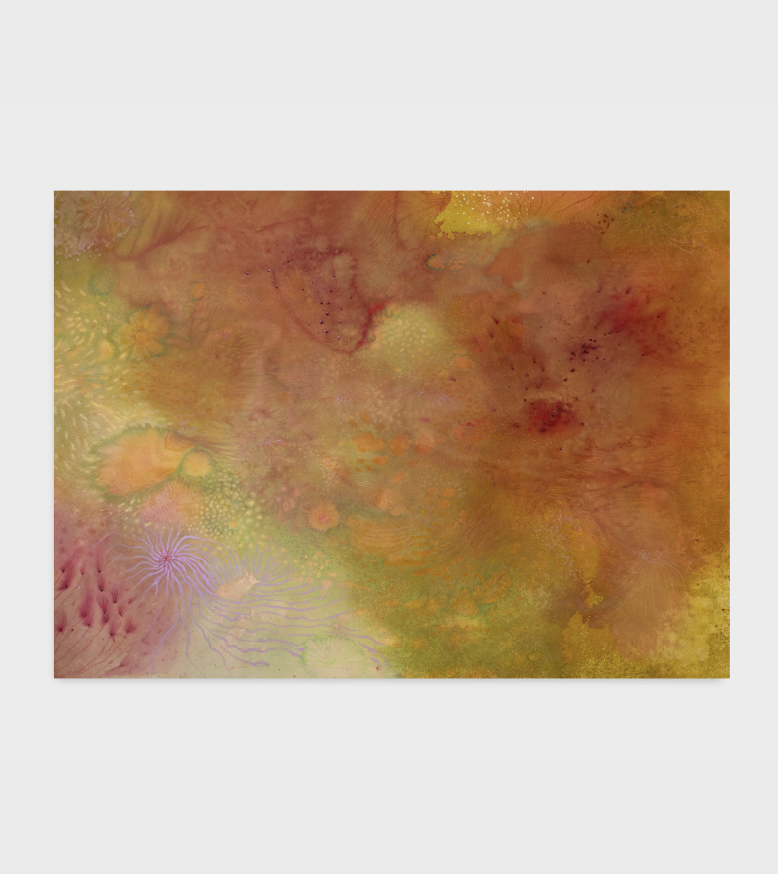Mixed media on raw fabric